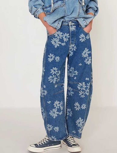 Daisy Denim 🌼Barrel-leg denim with a playful twist, covered in an allover daisy print that feels fresh and fun. The relaxed shape gives them that lived-in vibe, while the floral pattern makes them a total standout.